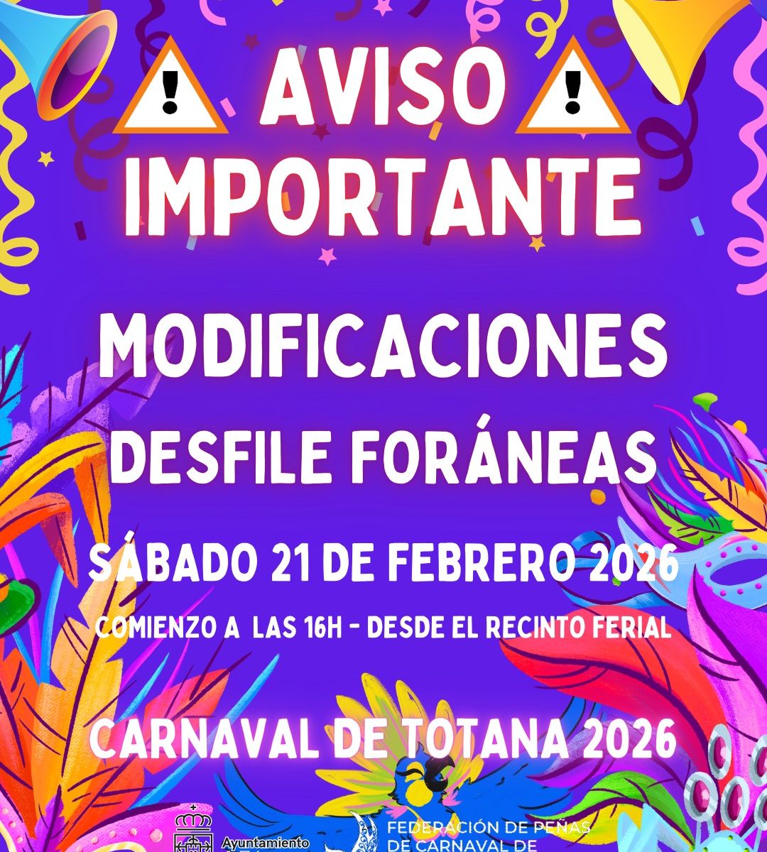 Desde la organización se invita a vecinos y visitantes a disfrutar de una jornada festiva que volverá a convertir Totana en referente del carnaval regional, con una tarde repleta de ambiente, creatividad y espectáculo.